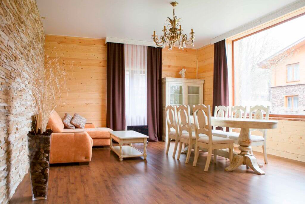 Площадь 100-110 кв. м. Вмещает 10 гостей (включая детей).