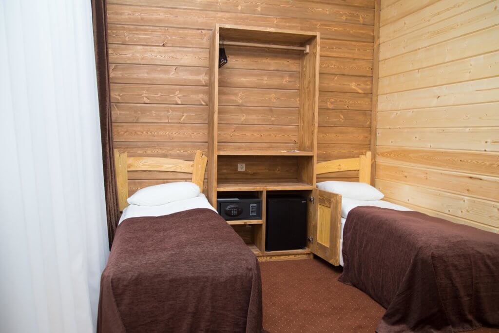 Две кровати-трансформер в сдвинутом/раздвинутом состоянии. В номере сейф, мини-бар за доп. оплату, плазменный ТВ, в санузле ванная, набор косметики, фен. Доп. место не устанавливается.