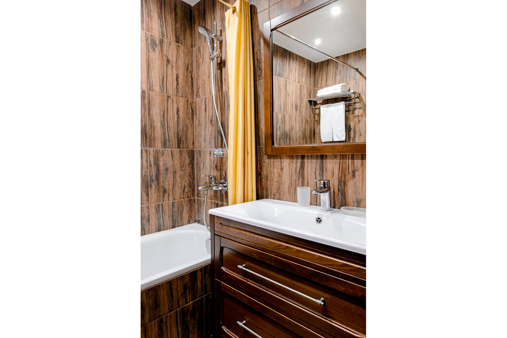 Две раздельные односпальные кровати. В номере сейф, мини-бар за доп. оплату, плазменный ТВ, в санузле ванная, набор косметики, фен. Доп. место не устанавливается.